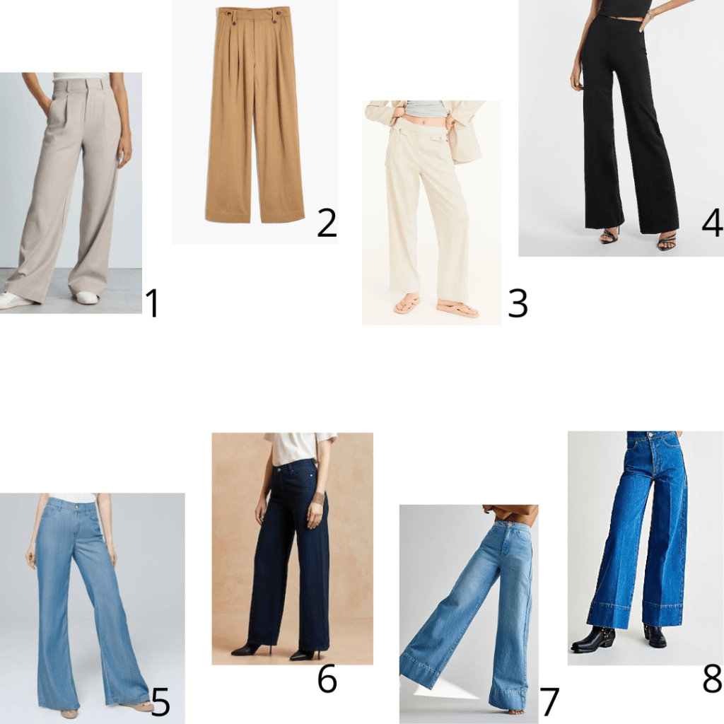 If you want to stick with the skinny jean, you go right ahead! You should feel good about what you wear. However, if you dare to venture into the world of wide-leg trousers and jeans, there are a couple of things to keep in mind when styling.